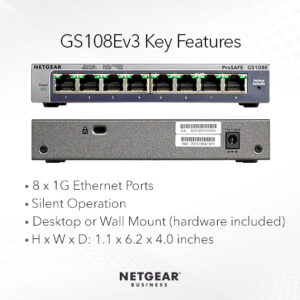 On top of the plug-N-play Gigabit Ethernet connectivity, these switches also offer essential networking features such as VLAN, QoS, IGMP Snooping, Link Aggregation / Port Trunking on models with 16 ports or more, rate limiting and traffic monitoring. NETGEAR Plus Switches are an exceptional value for businesses looking to add intelligence to their network beyond what unmanaged switches can provide.